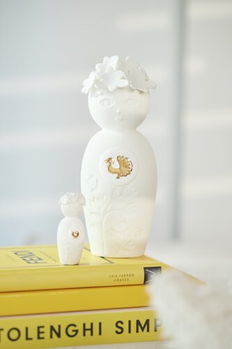 De meeste wensen, dromen en doelen die wij mensen hebben lijken groot en ver weg en toch passen ze vaak op een klein stukje papier en zouden ze hun plaats moeten hebben in het hier en nu. Dit droompopje staat symbool voor de magische plek waarin wensen en dromen kunnen ontvouwen en gerealiseerd worden. Dit droompopje is handgemaakt van het beste porselein met veel aandacht voor detail. Het hart van dit droompopje is beschilderd met gelegeerd goud. De uitstekende kwaliteit voel je aan het fluweelzachte oppervlak.
