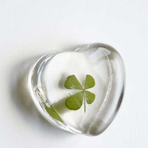 Deze is heel erg leuk om kado te geven aan iemand die je lief is, die iets moois mee maakt of die misschien een zware tijd heeft. Een hartje is altijd raad en dit hartje is extra mooi omdat er een echt klavertje vier in gesmolten is.