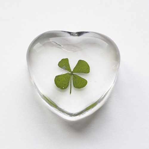 Het klavertje vier op de foto is een voorbeeld. Elk klavertje vier is uniek, dus elk hartje is verschillend. Je ontvangt een mooie uit de voorraad. Deze kan dus iets afwijken van de foto.