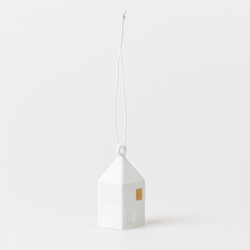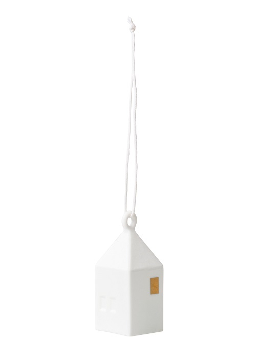 Allerschattigste hanger van Räder. Het is een klein huisje van deels geglazuurd en deels mat wit porselein met daarop kleine raampjes, deurtje en 2 goudkleurige raampjes. Het huisje hangt aan een wit koortje en heeft aan de binnenkant een klein klepeltje wat een zacht tingelend geluid geeft als je het heen en weer beweegt. Deze hanger is prachtig met de kerstdagen, maar is niet typisch kerst, dus laat hem maar mooi hangen. Hij is ook heel geschikt om aan de deur van je kast te hangen.