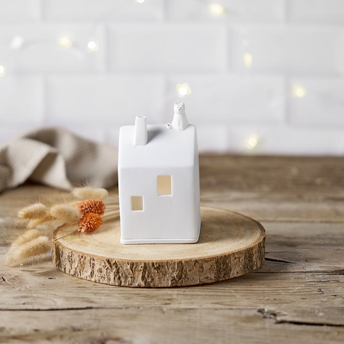Voor de echte poezen - katten liefhebber is dit geweldig leuke huisje van Räder. In het huisje zijn een aantal vogeltjes gestanst waar het licht heel mooi subtiel doorheen schijnt. Het poesje zit boven op het huisje en heeft kleine handbeschilderde gouden details. Op het dak zie je een klein spoor van kattenpootjes. Wat een lief, geweldig mooi huisje is dit. Het combineert ook prachtig  met het vogeltjes huis Bird Light House van Raeder (artikelnummer 15111) en het Tree House huisje (artikelnummer 15112), Of zet het naast het Wild Flower huisje (artikelnummer 14725), zodat het katje kan genieten van alle mooie bloemen.