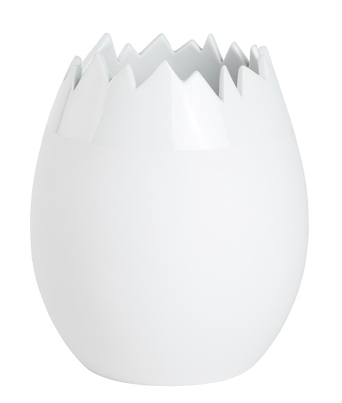 Räder heeft zo'n geweldig leuke Paascollectie. Deze mooie vaas is daar een onderdeel van. De vaas lijkt net een reuze ei en dan heel geschikt voor de mooiste zomerse bloemen. De vaas is gemaakt van mat wit porselein en heeft aan de bovenkant een geglazuurde rand. De vaas is van binnen ook helemaal geglazuurd.