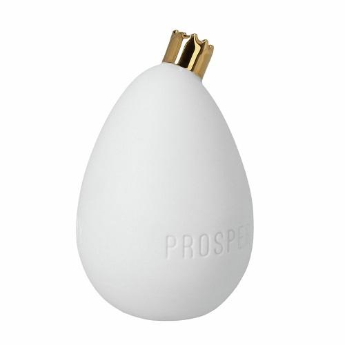 Dit is een te leuk porseleinen ei van Räder. Het is gemaakt van mat wit porselein, heeft een krans van lentebloemetjes die een handbeschilderd goudkleurig stipje hebben. Aan beide kanten is subtiel de tekst Sprint Time aangebracht. Zet het eitje met wat haasjes op een mooie schaal of een plateau, kleed het aan met vrolijke bloemen en een schaaltje chocolade eitjes en jouw versiering is helemaal compleet. Prachtig!