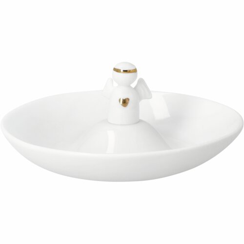 Superlief en veel te leuk is dit schaaltje van Räder. Het schaaltje is aan de onderkant glad mat wit en aan de bovenkant geglazuurd porselein. In het midden van het schaaltje staat een lief klein engeltje met een handbeschilderd goudkleurig haarbandje. Wauw, wat zal dit schaaltje mooi in jouw huis staan.