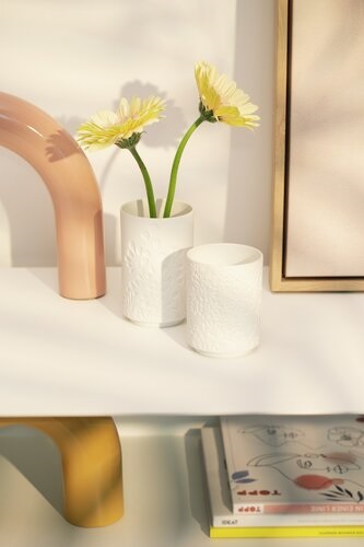 Fantastisch en mooi gedetailleerd porseleinen vaasje van Räder. Het is gemaakt van mat wit porselein. De afbeeldingen van takken zijn gestanst. Dit vaasje is heel geschikt voor een wat korter boeketje bloemen. Heel erg leuk is het om er bijvoorbeeld tulpen in te zetten. Je knipt ze wat korter af en dan zie je ze groeien in het vaasje.
