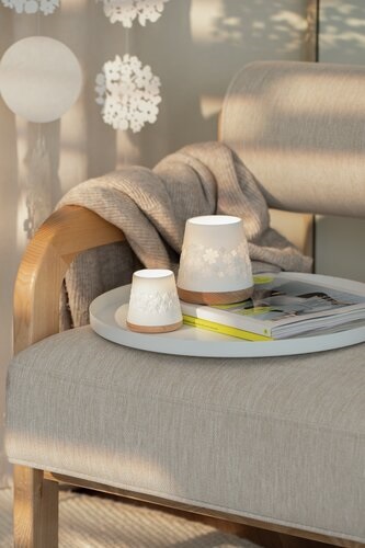 De combinatie porselein en hout is wel bekend van Räder. Maar deze waxinelichten zijn toch wel weer heel erg mooi. Haal het voorjaar en de zomer in huis en geniet van de subtiele klavertjes die je ziet als je er een waxinelichtje in brandt. Het waxinelicht is gemaakt van mooi wit porselein met een klavertjesprint en past geweldig bij de andere waxinelichten, schaaltjes en vazen van Räder.