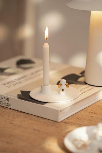 Fantastische waxinelichthouder van geglazuurd porselein van Räder. Deze houder zet je eenvoudig op een mooie fles, een smal potje, een vaasje, wat voor moois je ook hebt. De waxinelichthouder is geschikt voor een standaard waxinelichtje.Het tuitje dat in de fles gaat, is voorzien van een dun siliconen bandje. Dit zorgt er voor dat de waxinelichthouder stabieler in de fles zit. Ook heel mooi is de combi van deze waxinelichthouder met de kaarsenstander (artikelnummer 17288).