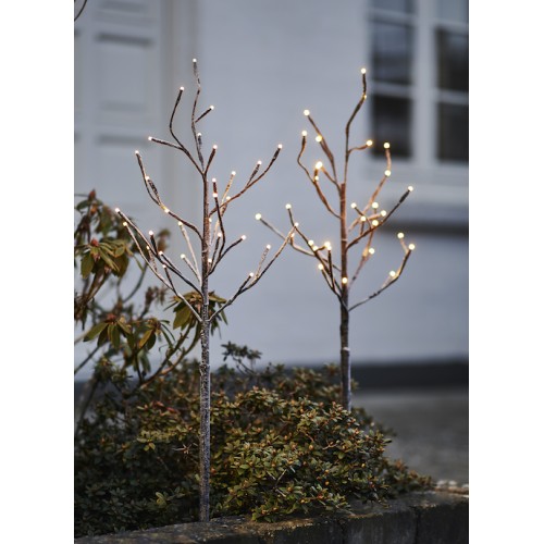 Schitterende, net niet helemaal strakke kerstboompjes van Sirius , de Alex Tree. Je koopt hier de set van 2 kleine boompjes die allebei 80 cm hoog zijn en elk voorzien zijn van 30 lampjes. De boompjes zijn donkerbruin en hebben een zweem van Snowy White. De boompjes werken elk op 3 AA batterijen (exclusief) en kunnen bediend worden met de Sirius Remote (exclusief, verkrijgbaar bij www.waanzinnigleuk.nl) en hebben 25 cm extra snoer. Beide bomen hebben een puntige stang waarmee je de boompjes in een pot met aarde of zand kunt plaatsen. Bijvoorbeeld twee mooie potten met planten waar je de boompjes ook insteekt. De boompjes zijn geschikt voor binnen en buiten. Zet ze bijvoorbeeld op het terras of aan beide zijden van de voordeur. kleur snowy bruin.