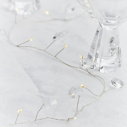Prachtig lichtsnoertje van Sirius. Dit snoertje heeft een zilverkleurig, goed buigzaam metalen snoer waaraan 20 warm witte led lampjes en 20 heldere kleine ‘briljantjes’ zijn bevestigd. Dit snoer maakt van jouw huis een feestje tijdens de donkere avonden. Gezellig warm wit licht in een snoertje van 2 meter met 30 cm extra. Het snoertje werkt op 2 AA batterijen (exclusief). Je kunt het snoertje uithangen, om een tak wikkelen, je kerstboom er mee versieren en veel meer. Of doe dit geweldige snoertje eens in een (glazen) schaal of glazen vaas of fles, erg mooi!