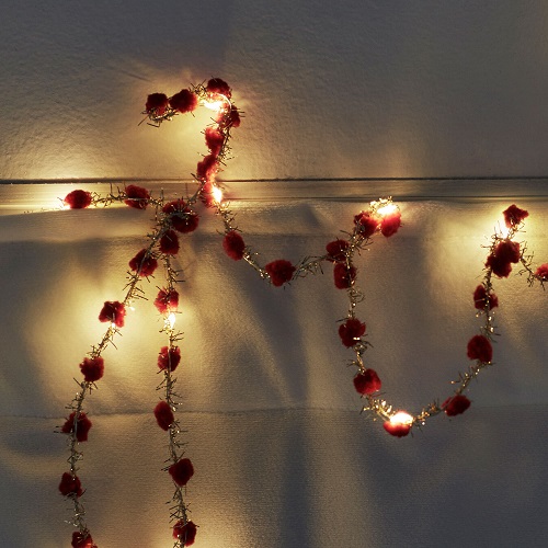 Prachtig, kleurrijk lichtsnoertje van Sirius. Dit snoertje heeft kleine rode balletjes van stof, een goudkleurige slinger en 20 warm witte led lampjes. Dit snoer maakt van jouw najaar een feestje tijdens de donkere avonden. Gezellig warm wit licht in een snoertje van 2 meter met 30 cm extra. Het snoertje werkt op 2 AA batterijen (exclusief). Je kunt het snoertje uithangen, om een tak wikkelen, je kerstboom er mee versieren en veel meer. Of doe dit geweldige snoertje eens in een (glazen) schaal of glazen vaas of fles, erg mooi!