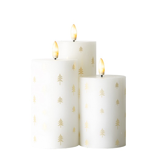 Sirius Sille oplaadbare kaarsen, set van 3 in verschillende hoogtes met print van gouden bomen 80590