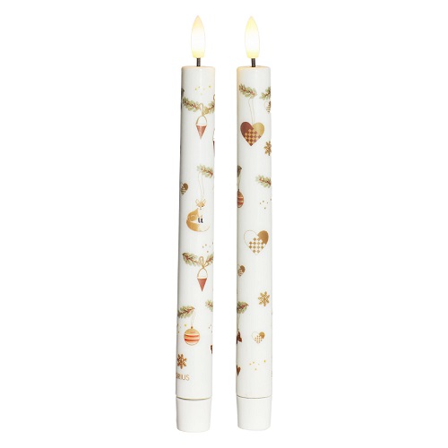 Sirius led diner kaars Sille wit Mie met print kerst, set van 2