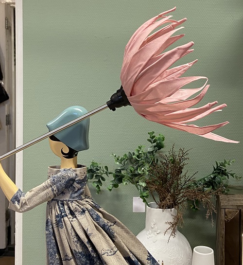 ATTENTIE! OP DE EERSTE FOTO ZIE JE DAT JANE EEN WIT PARAPLU KAPJE HEEFT. DEZE LAMP HEEFT ECHTER EEN ROZE PARAPLU BLOEM KAPJE, ZOALS JE OP DE TWEEDE FOTO ZIET!
