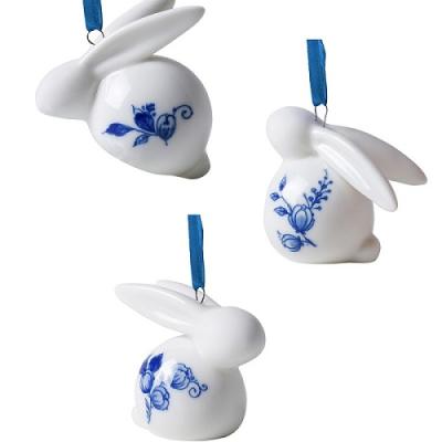 Heinen Delftsblauw hanger haasjes, set van 3